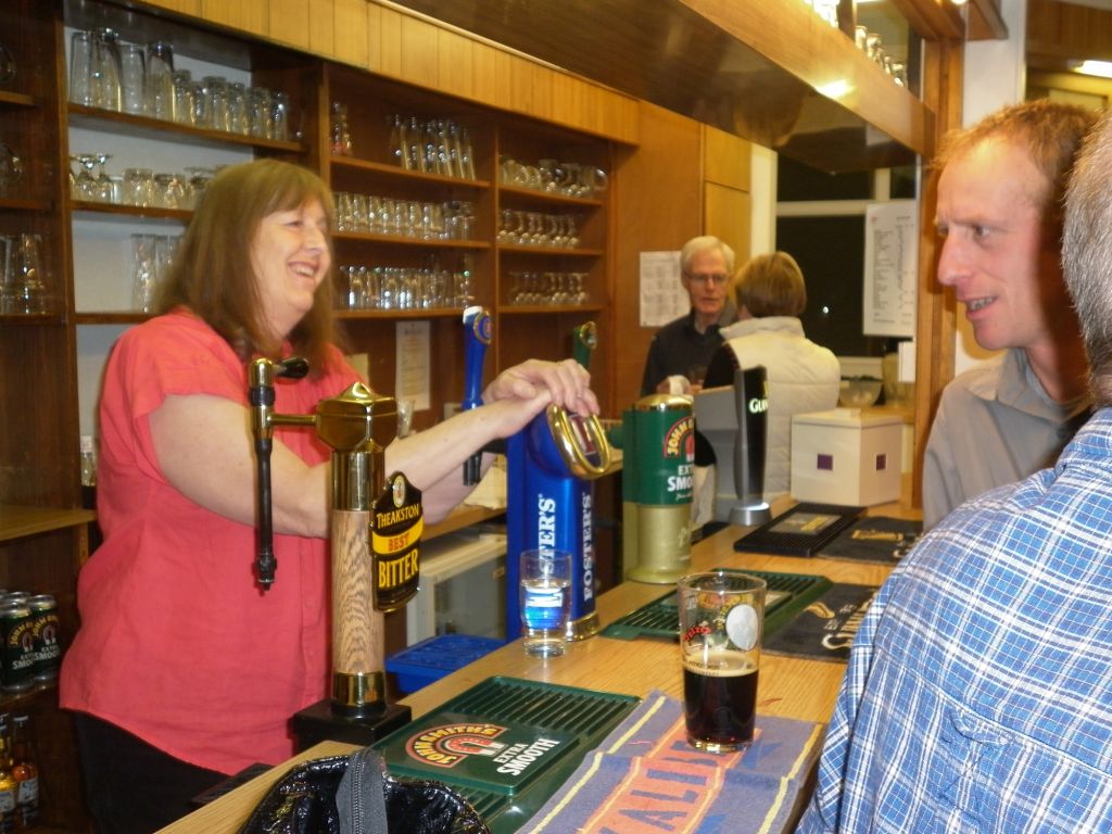 supper of Field's steak pie, mash and mushy peas, followed by Black